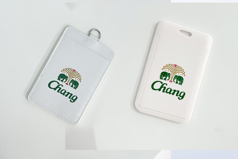 ทางร้านสามารถพิมพ์โลโก้ต่างๆลงบนวัสดุกรอบใส่บัตรได้โดยไม่จำกัดสี มีแบบพิมพ์สีปกติ (ผิวหยาบเล็กน้อย) แบบพิมพ์ลงวานิช (VANISH) เพิ่มความเงางามให้กับตัวโลโก้ได้